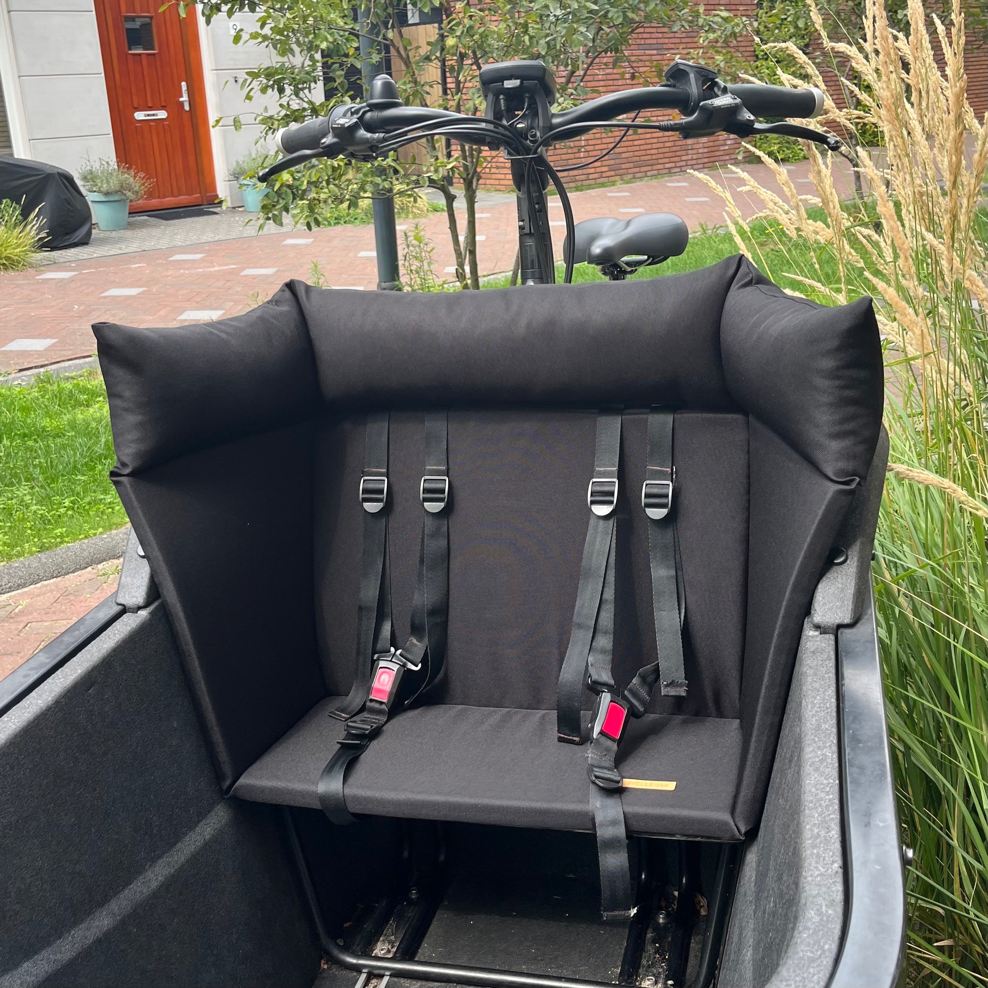 The Studio Vollebak cargo bike pillow provides extra comfort and safety for your child(ren) in the cargo bike. The pillow offers a comfortable headrest and at the same time one softer seat on the bench (back and seat). The pillow also provides extra head/neck support of your child(ren). The pillow is available in different colours. It is easy to mount in the box, using the original straps of the box. The fabric used is durable and water resistant. Important: the cargo bike pillow is only suitable for the Carqon Cruise and Carqon Classic.
