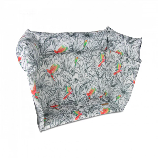 The soft seat, back panel and side panels are filled with high-quality SG40 foam rubber. This material strikes the perfect balance between comfort and firmness, giving your child all-around support. The cover is made from a durable, water-repellent outdoor fabric that can withstand rain and is easy to clean. The cushion fits perfectly in the box, even when using a rain cover.