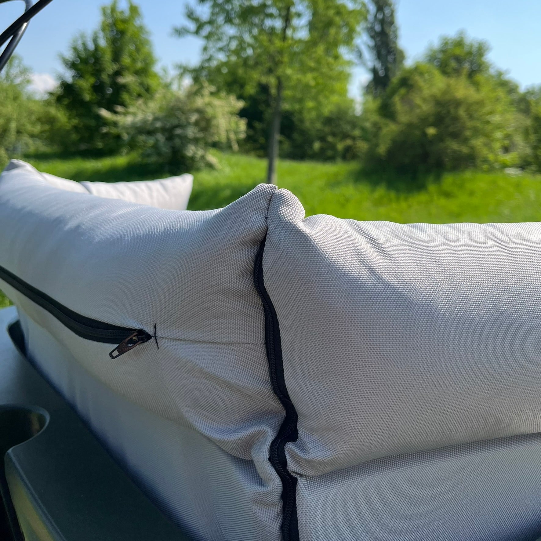 Die weiche Sitzfläche, die Rückenlehne und die Seitenpolster sind mit hochwertigem SG40-Schaumstoff gefüllt. Dieses Material bietet eine ideale Balance zwischen Komfort und Festigkeit, sodass dein Kind rundum gut gestützt ist. Der Bezug besteht aus einem langlebigen, wasserabweisenden Outdoor-Stoff, der regenbeständig und leicht zu reinigen ist. Auch in Kombination mit einem Regenverdeck passt das Kissen perfekt in die Box.